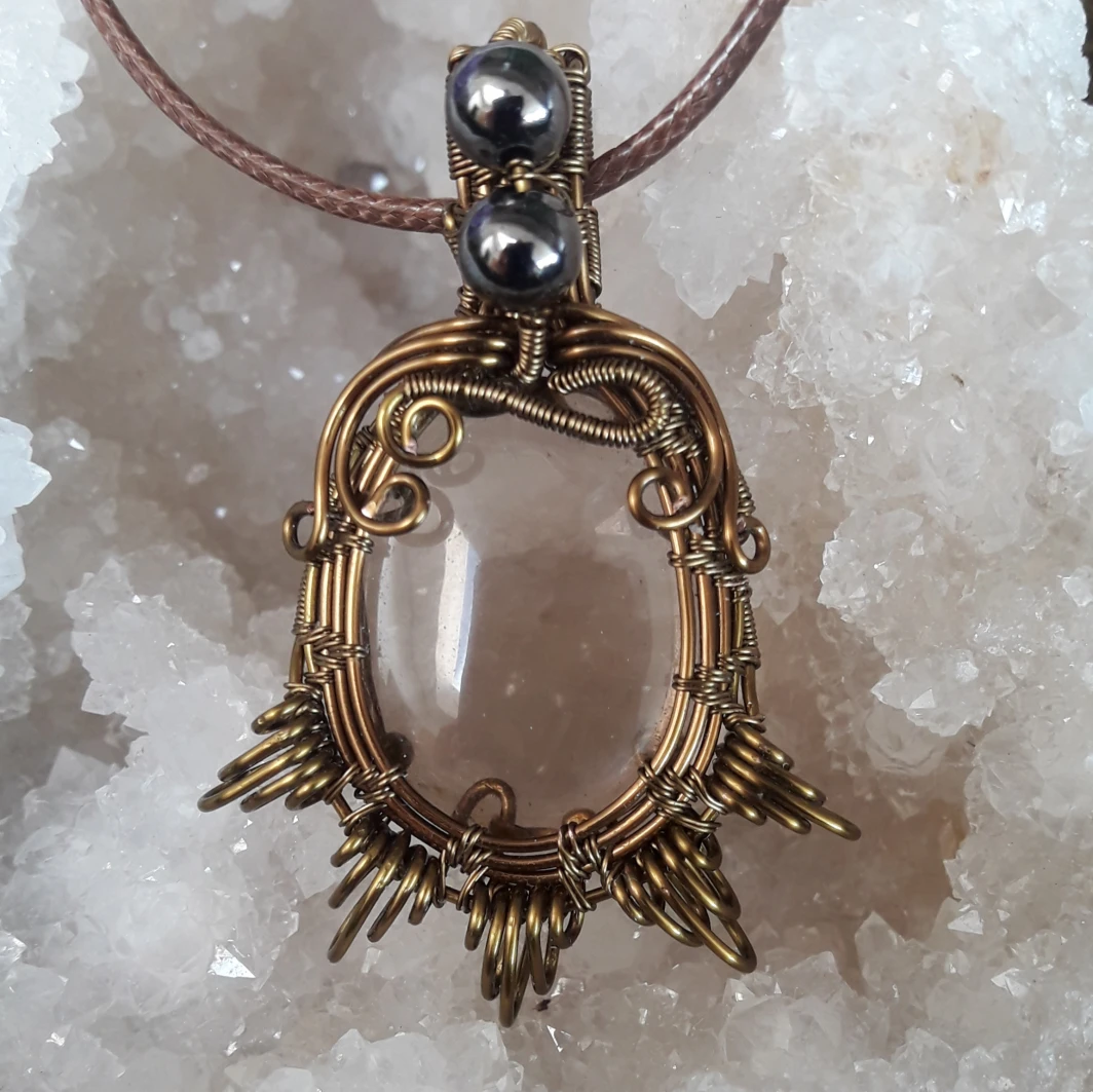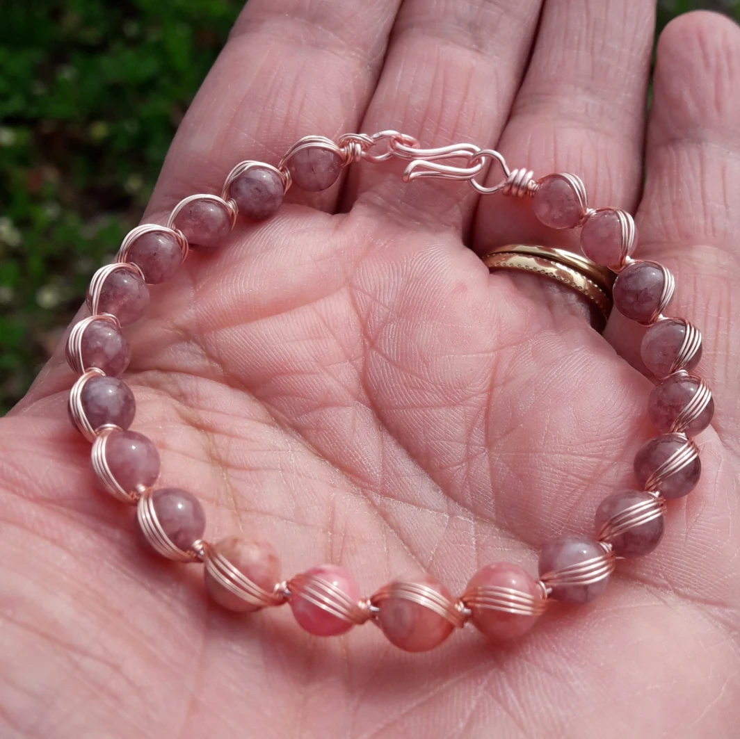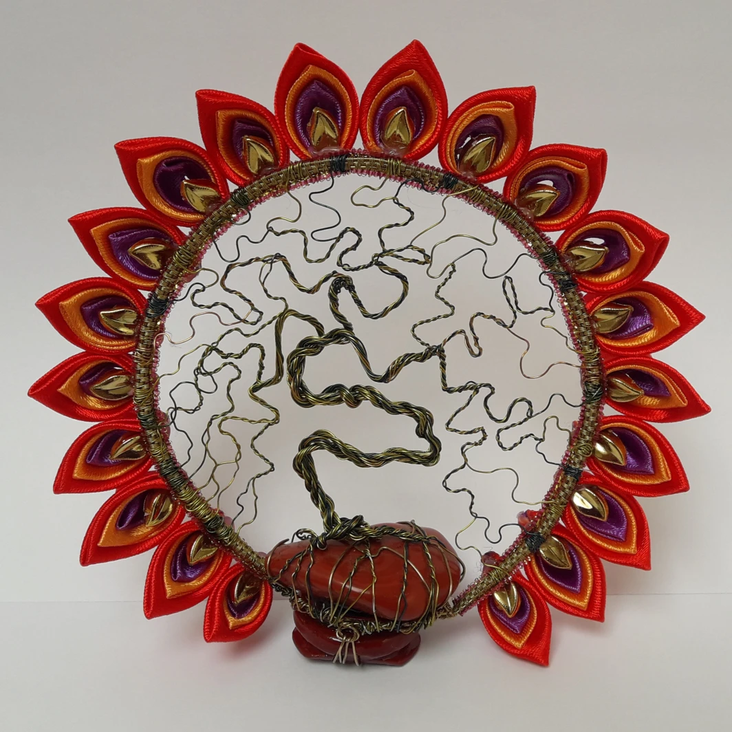 Mélange de techniques entre Kanzashi Tsumami et Wire Wraping sur Jaspe rouge