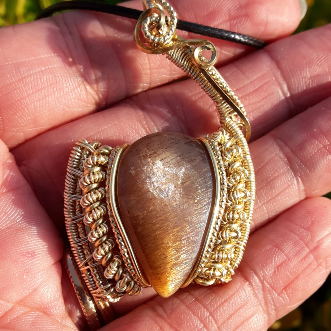 "En apesenteur" pendentif en Pierre de Soleil caramel