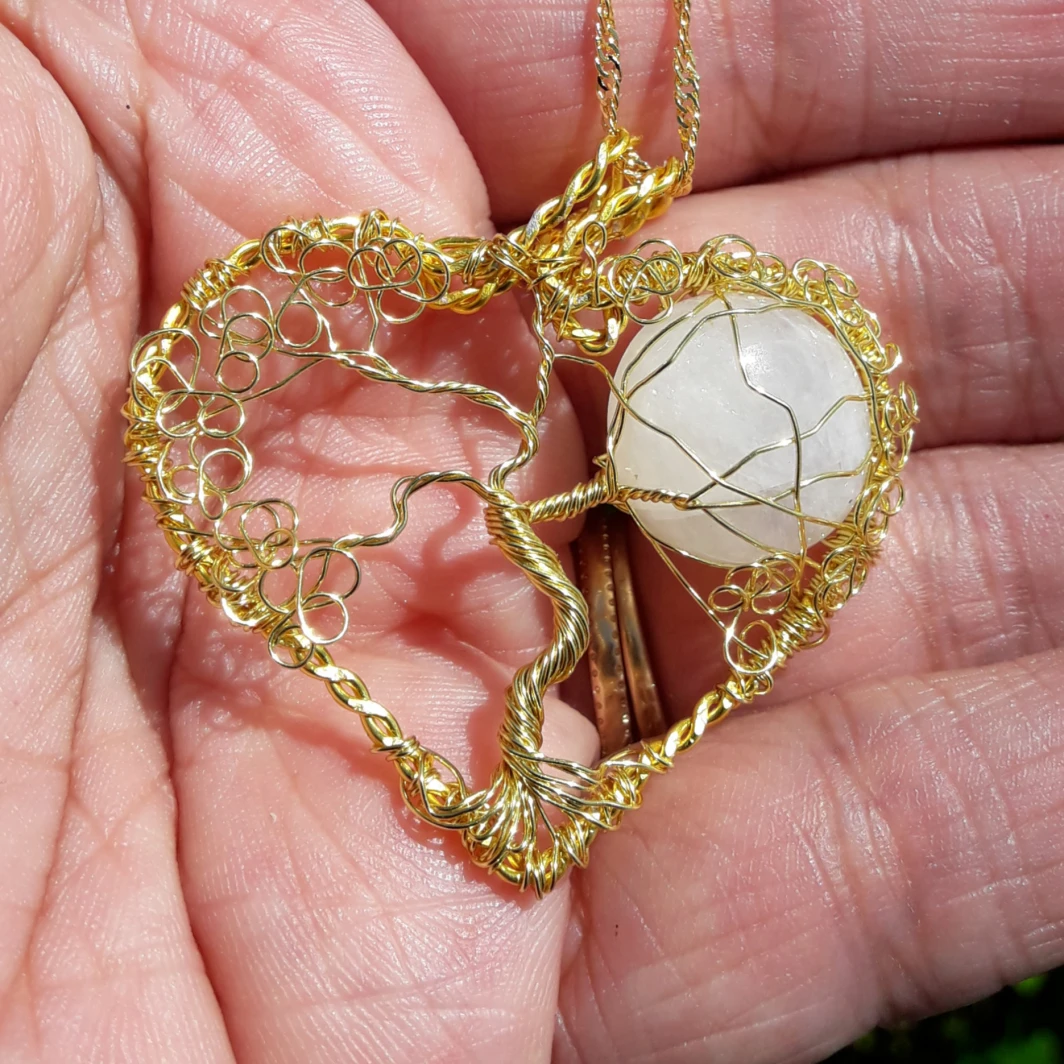 pendentif "arbre d'amour et de vie" avec pierre de lune (péristérite)